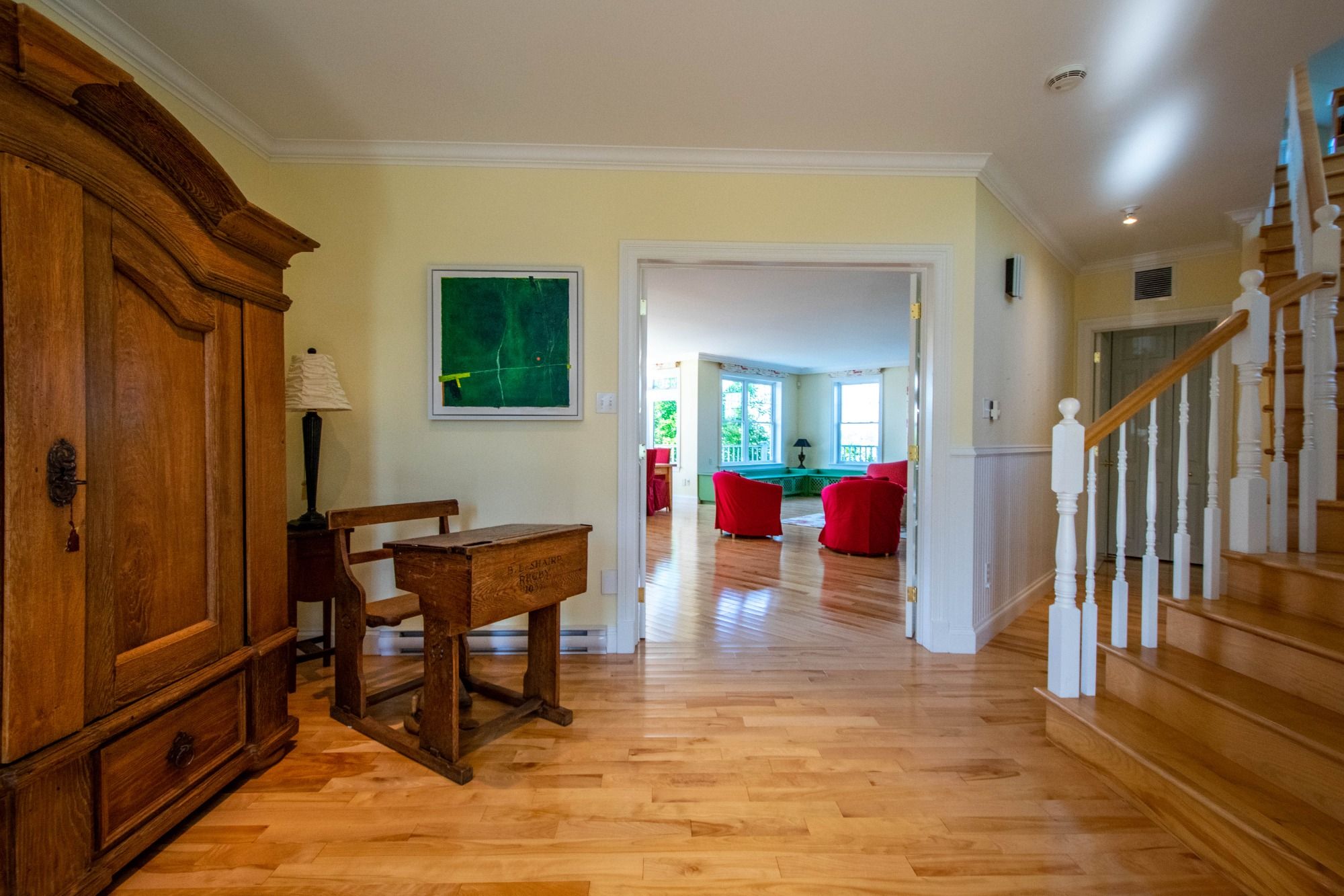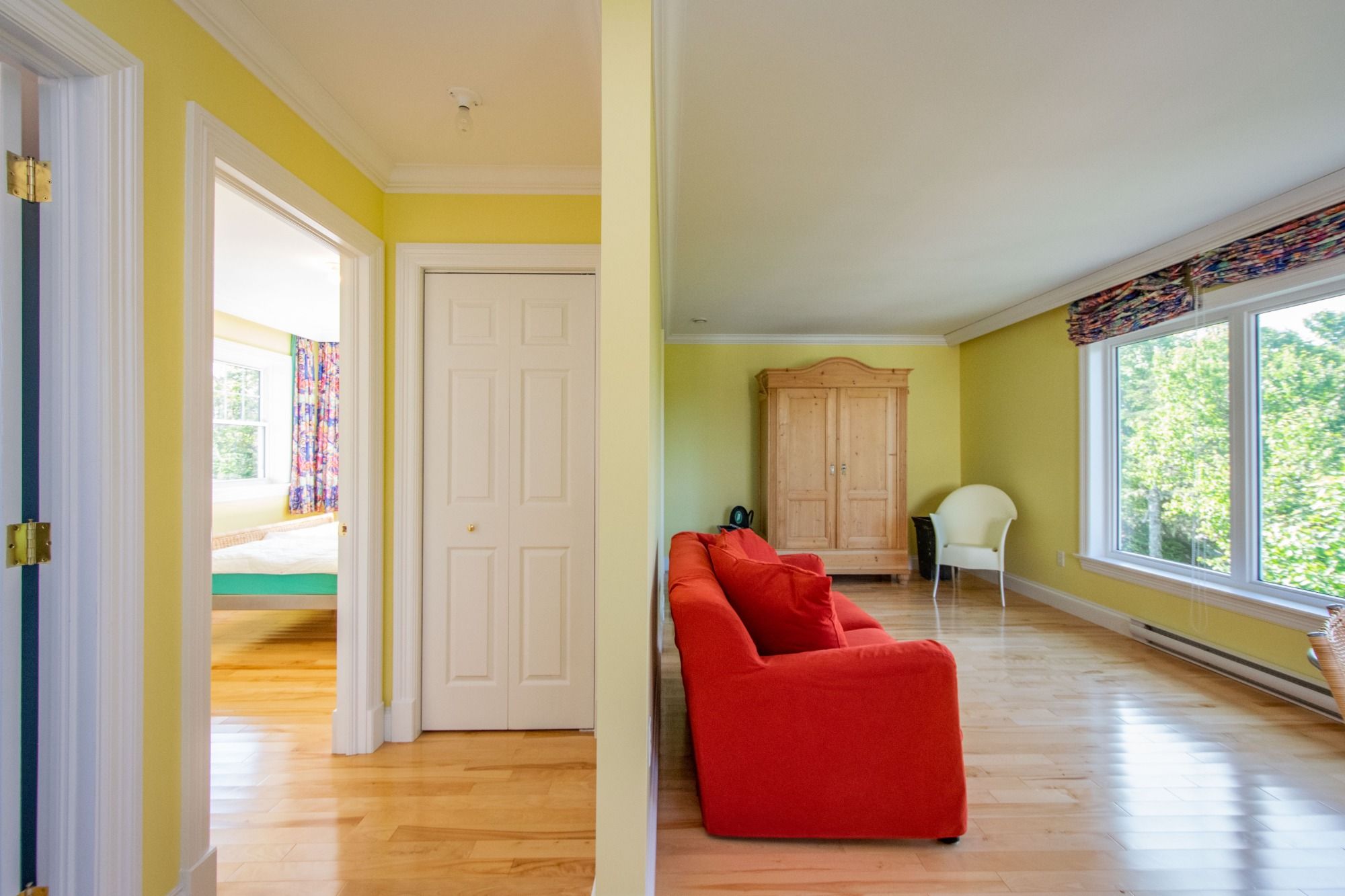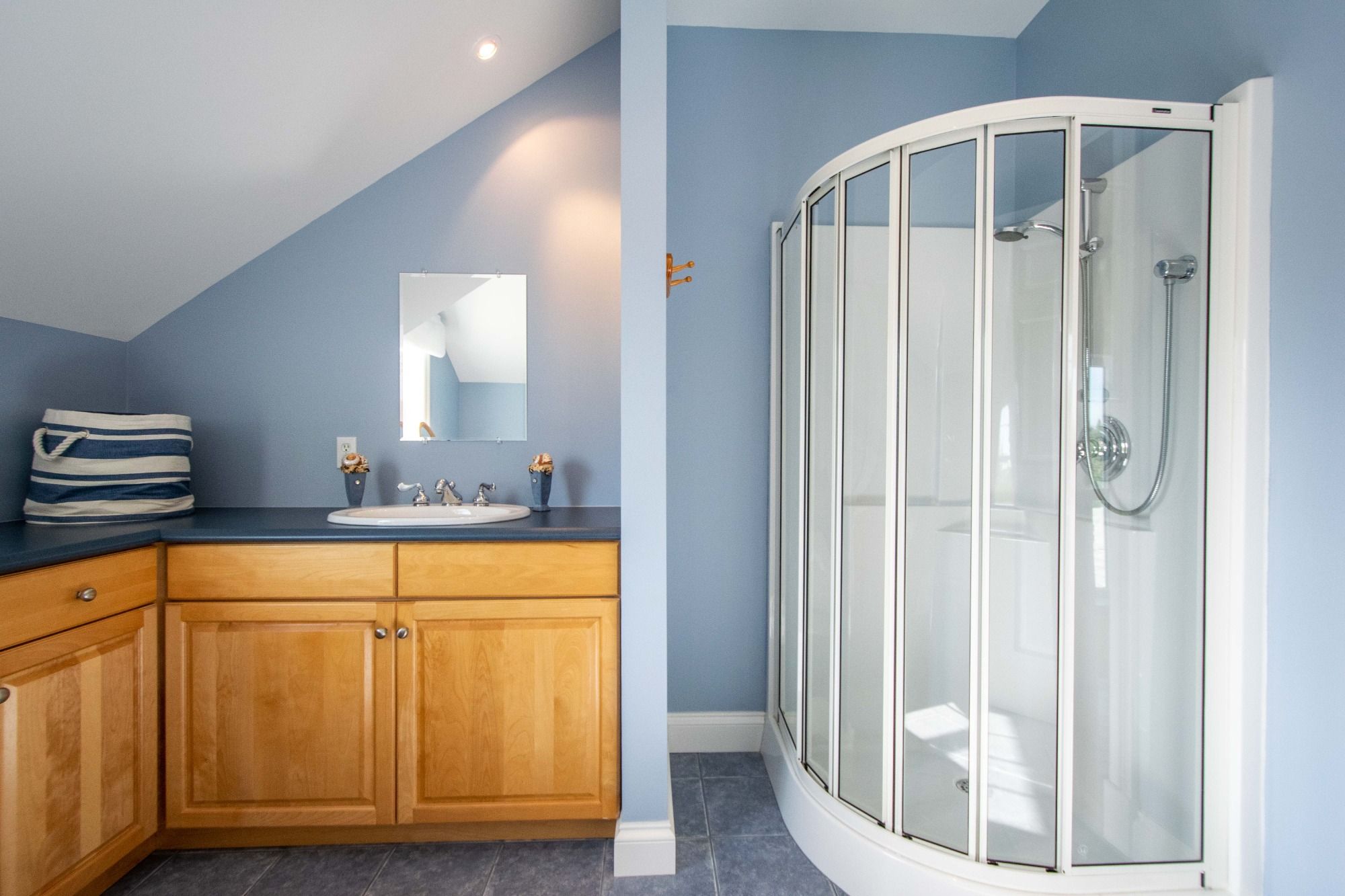 The terrace is surrounding the house by all sides and is connecting the house to the annex. Two garages offer a lot of golfing, finishing and paddling equipment to discover and use for your entertainment. To access the water, you can easily walk down one of the staircases that lead to the sea: one leads you to the entry point for kajaking or swimming, the other one to a separate platform which allows you to sit directly by the sea.